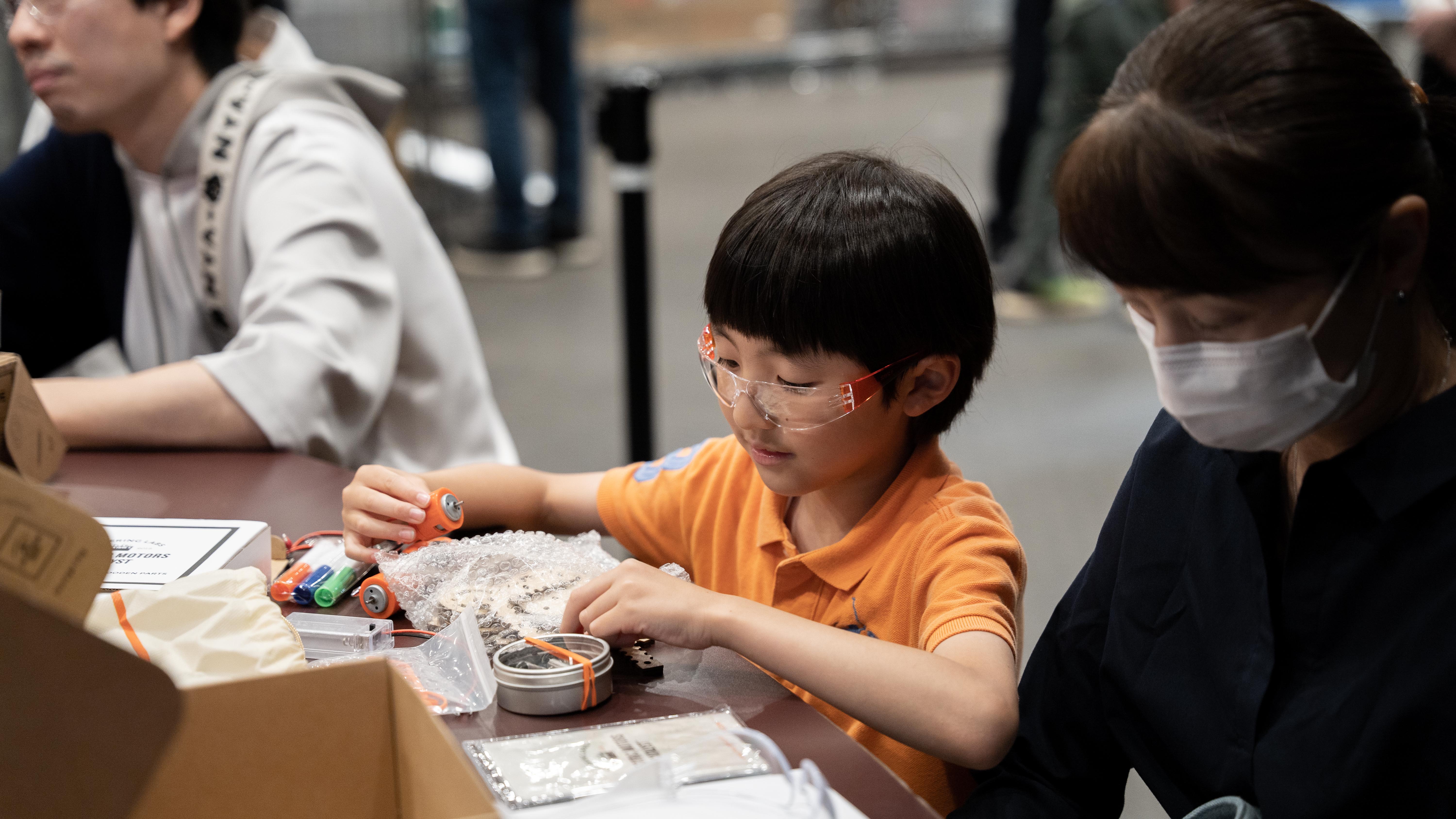 当日、子どもたちには『正解の無い問い』という決まった答えのないチャレンジに挑みます。モーターや電池など高品質なキットを使いながらアイデアを形にし、そのチャレンジに取り組む中で、問題解決力、創造性、主体性、論理的思考力、粘り強さを、多くの「失敗」と「再挑戦」(試行錯誤)を通じて育んでいきます。